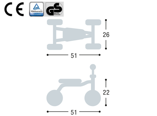 Da PUKYlino med 4 hjul er ofte barnets første køretøj, bør forældre udvise særlig omhu ved brugen: Kontroller altid nøjagtigt, om dit barn kan bruge køretøjet uden problemer.